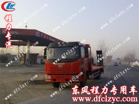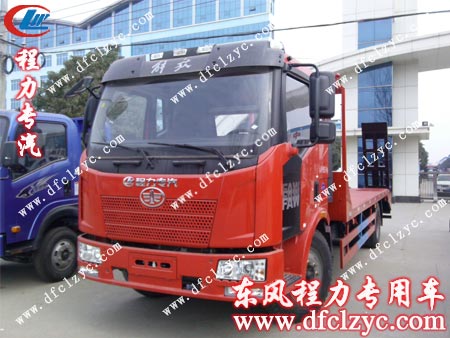 解放平板運輸車12月27日上午在湖北程力專用汽車有限公司大門口準備發(fā)車